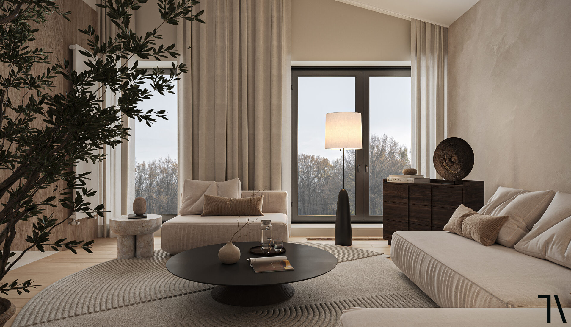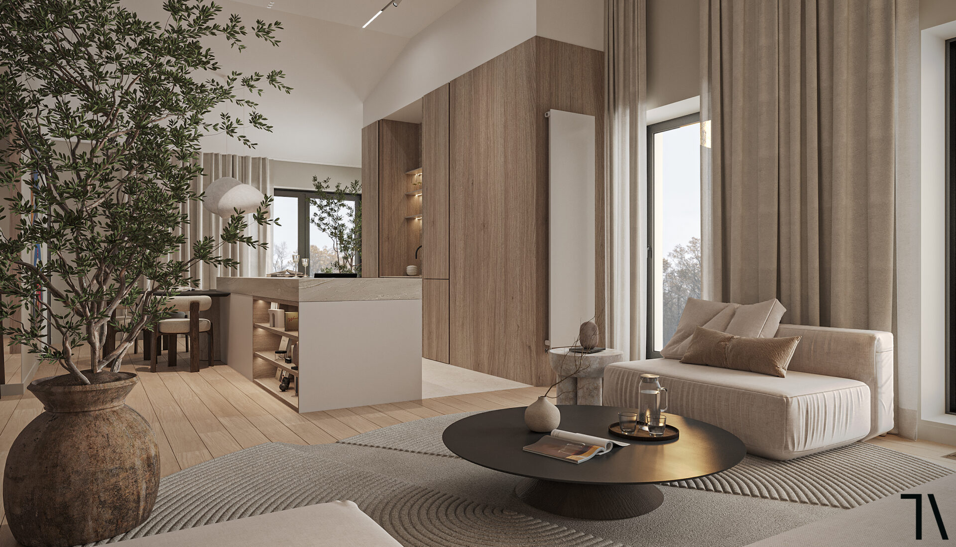 To wnętrze, które pozwala odetchnąć, zwolnić tempo i poczuć bliskość natury – subtelne, eleganckie i pełne spokoju.
