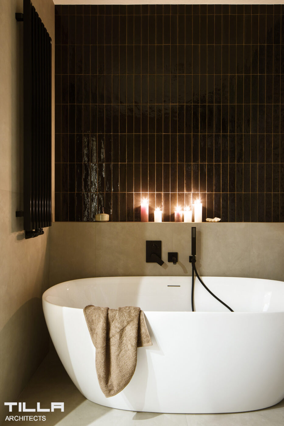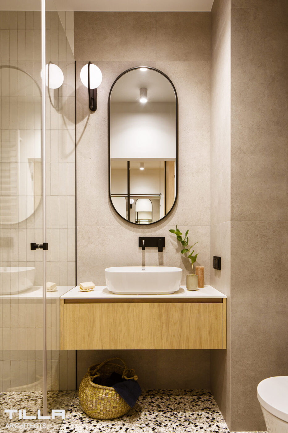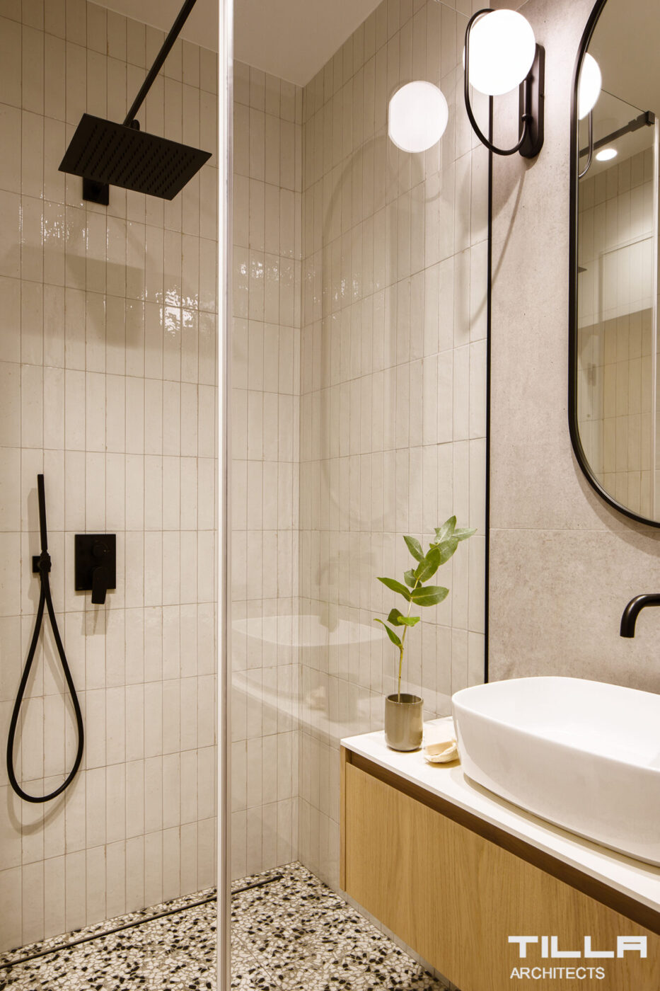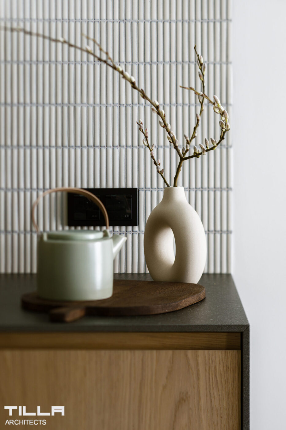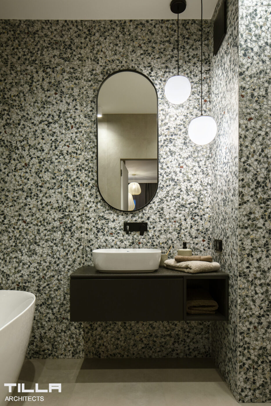 Harmonijne połączenie szarości, czerni, drewna i bieli tworzy spokojny kolorystyczny rytm tego miejsca. Prostota form i barw tworzy wdzięczne tło dla wyrafinowanych dekoracyjnych detali – stylizowanego oświetlenia, ażurowych ścianek z lameli i ceramiki. Na apartament składają się salon wraz z kuchnią, łazienka z prysznicem, łazienka z wolnostojącą wanną, sypialnia oraz loggia. Całość jest intrygująca, przytulna i pełna charakteru.